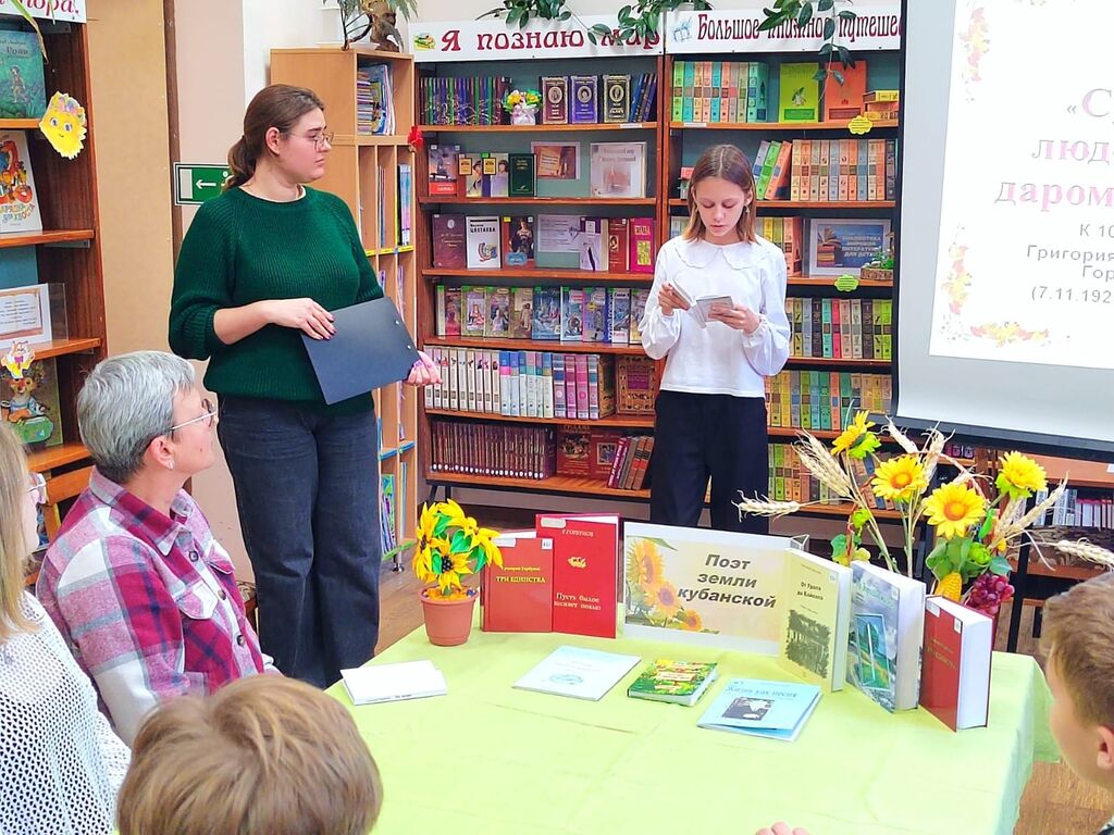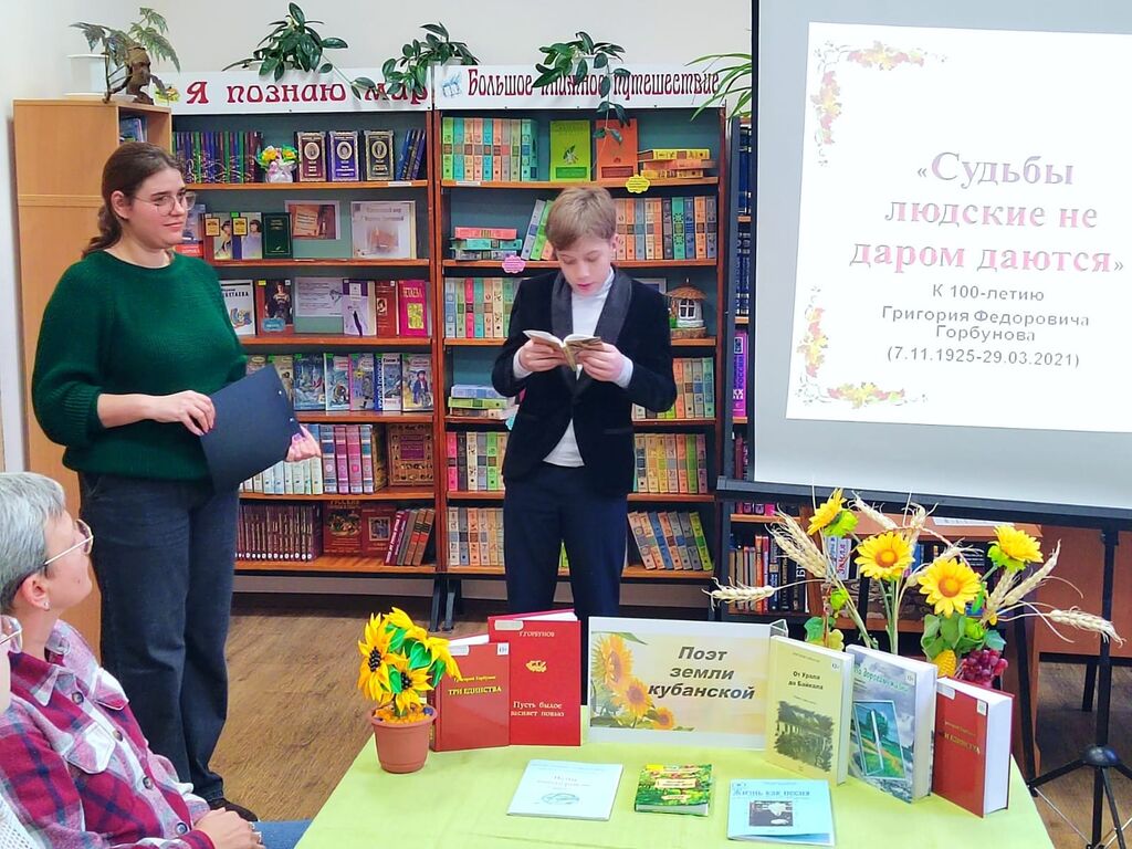 В стенах детской библиотеки прошли громкие чтения, посвящённые 100-летию со дня рождения талантливого поэта, ветерана Великой Отечественной Войны, члена Российского союза писателей, нашего земляка Григория Фëдоровича Горбунова.