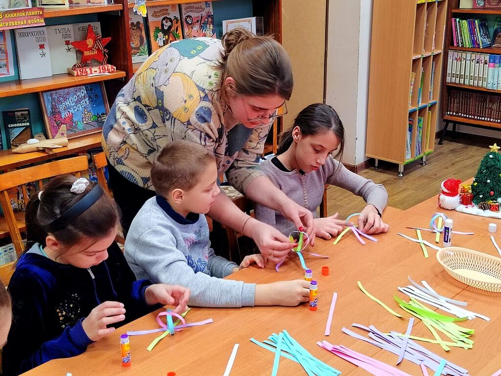 Главной темой встречи стало изготовление традиционных Новогодних игрушек — ëлочных шаров из цветной бумаги.