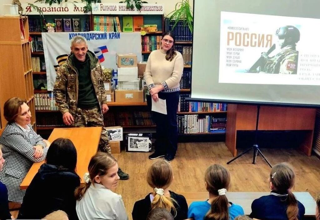 В читальном зале детской библиотеки проведена патриотическая беседа с учениками 8 "Б" класса школы №2 и воспитанниками социально-реабилитационного центра для несовершеннолетних о начале специальной военной операции и кризисе бывших братских стран - России и Украины, приуроченная к годовщине начала СВО.